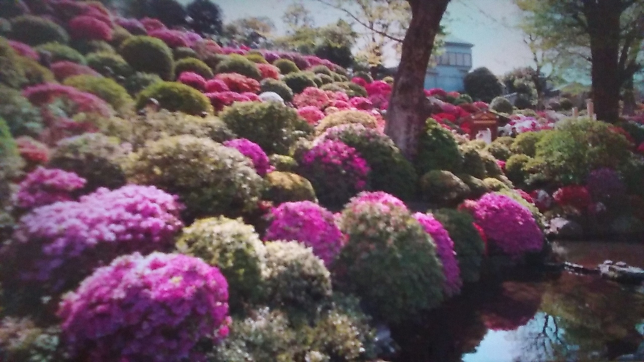 境内の2000坪のつつじケ岡を埋めつくすように色とりどりのツツジが咲いています