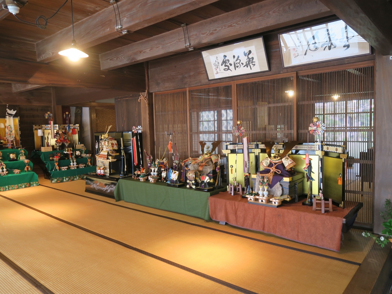 古い家屋の展示で、中に上がることはできませんでしたが、帳場や土間などは見ることができました。自分が行った時は五月人形が展示されていましたね。