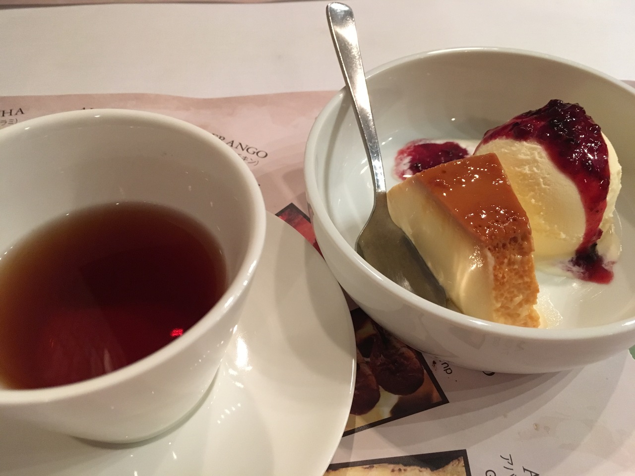その後、焼きパイナップルが提供され、締めのデザートとお茶でコースは終了。