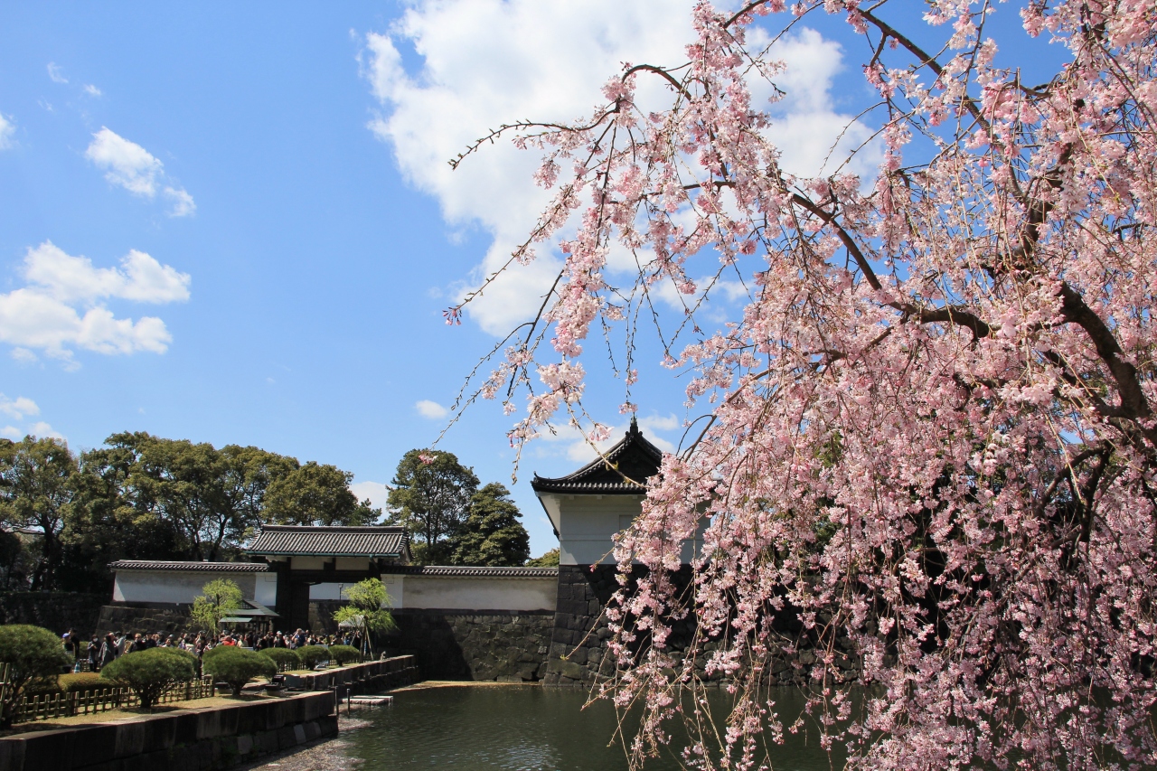 4月上旬に訪れた際には、お堀端の枝垂桜の並木が丁度満開で綺麗でした。