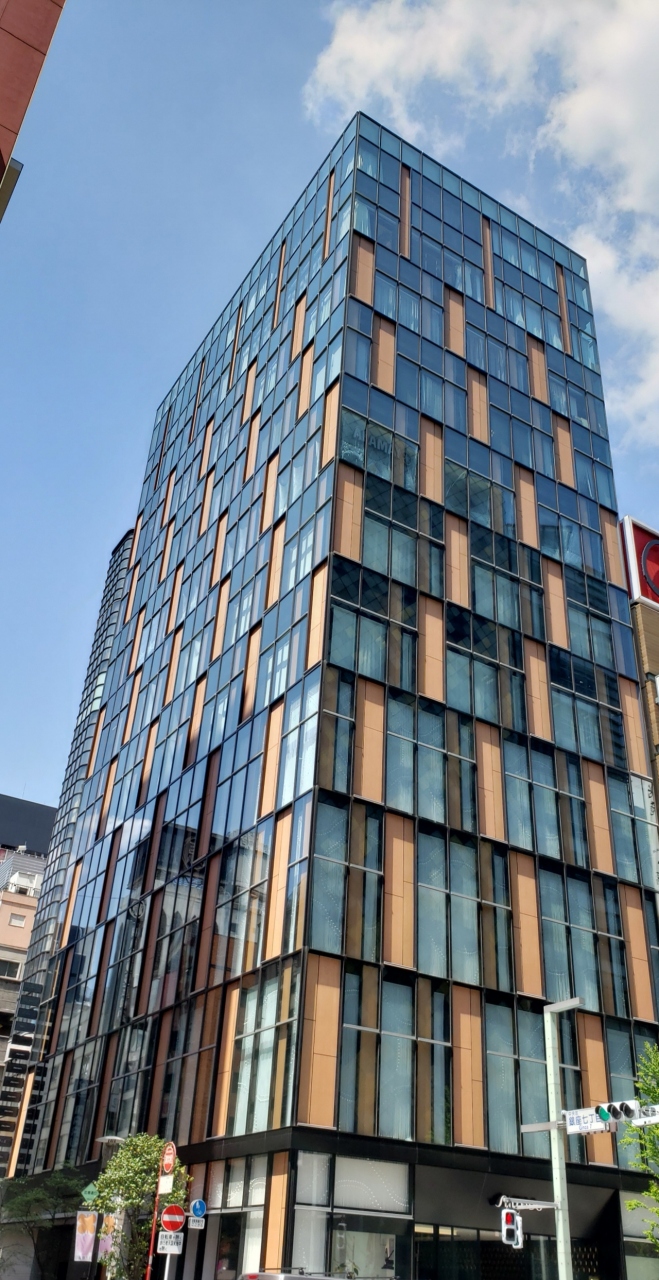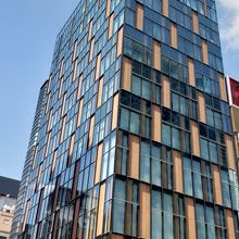 遠くからでも目立つちょっと変わった色合いとデザインのビルでした。