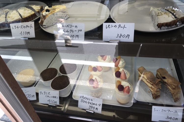 他にはシューミルフィーユやホワイトチョコのムース、プリン、ミルクレープがありましたがいずれも300円~400円強の価格帯でした。