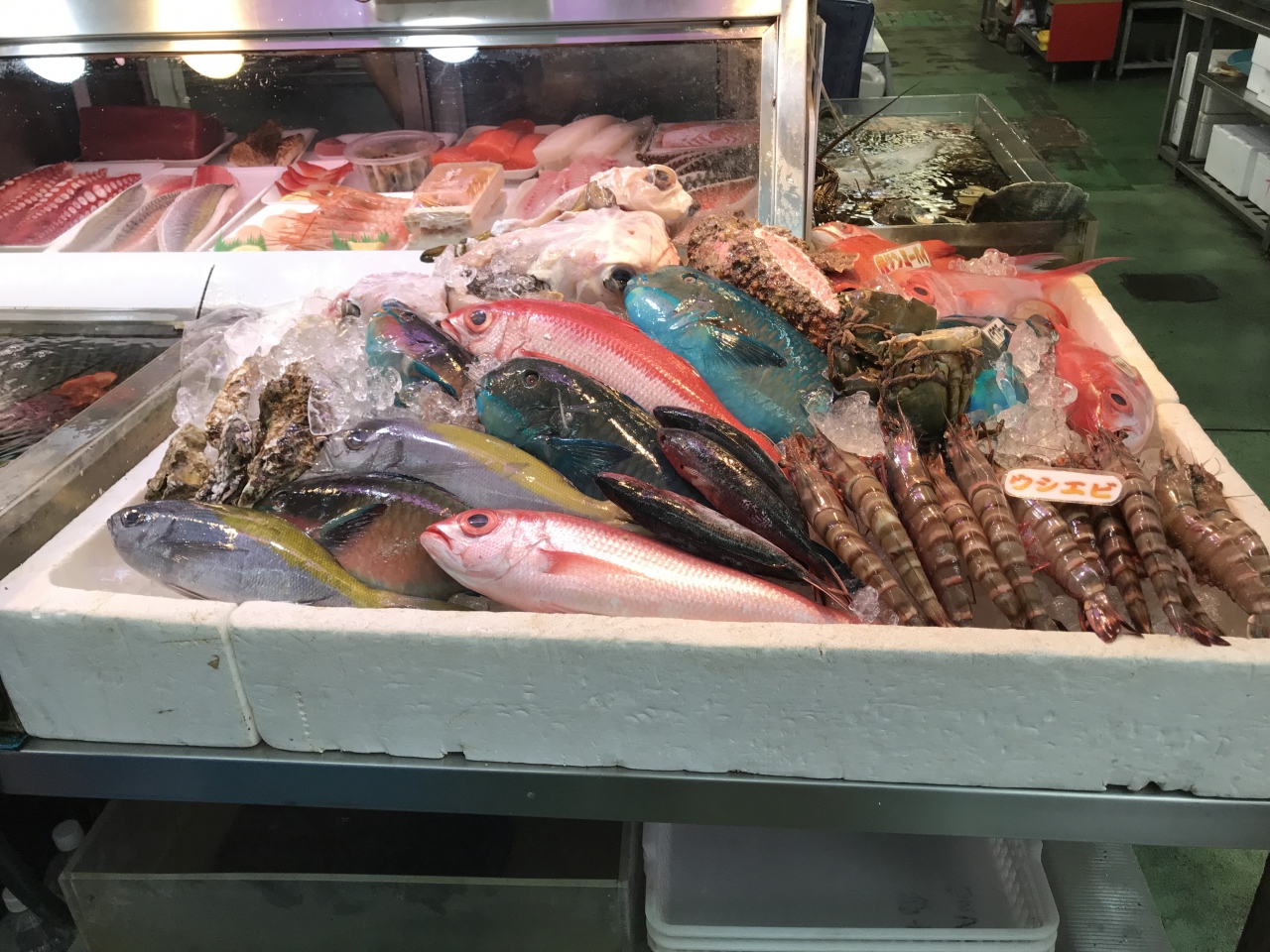 独特な色をした魚や驚くような豚の顔などが、店頭に並んでいます。