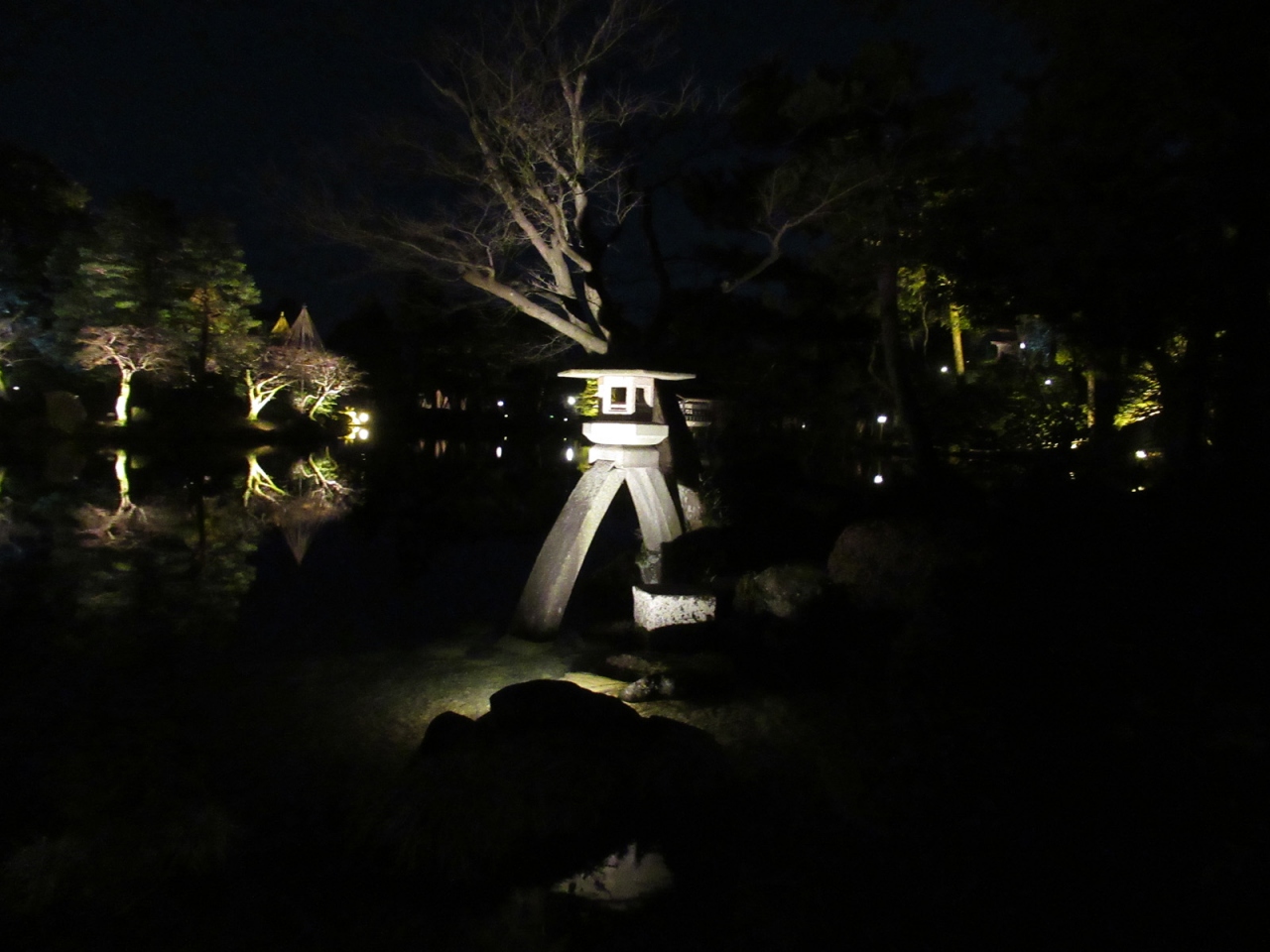 「金沢東急ホテル」のクラブラウンジで、スタッフから」「金沢城・兼六園四季物語 冬の段~金沢城・兼六園ライトアップ~」が開催中であるとの紹介を受けました。夜の「兼六園」を訪れたのは初めてでしたが、暗い箇所もあるため、さすが見学可能な地域は限られてはいたものの、「兼六園」の昼間とは違った姿を見ることができて楽しかったですし、無料開放であるのも素晴らしかったです(^^)。