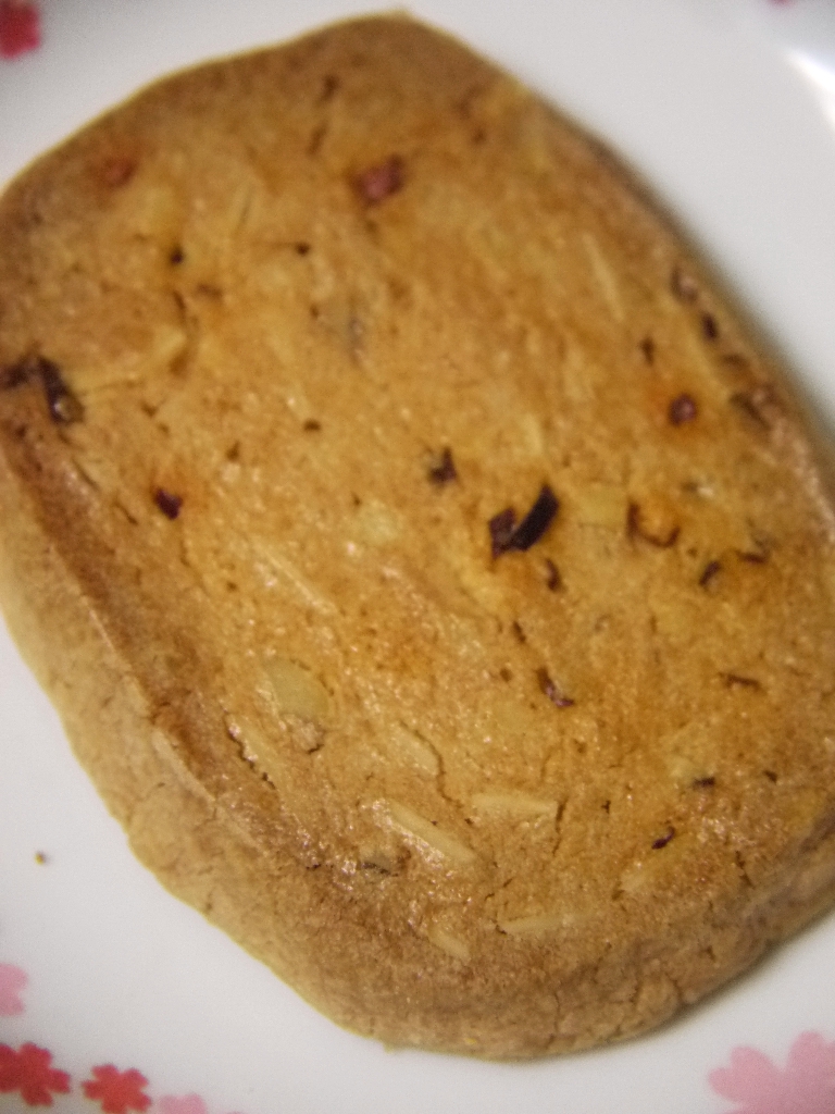 「激辛」となっていて、食べてみると、最初は甘さを感じるものの、次第に辛さを感じるようになる。唐辛子が練り込んであるらしい。