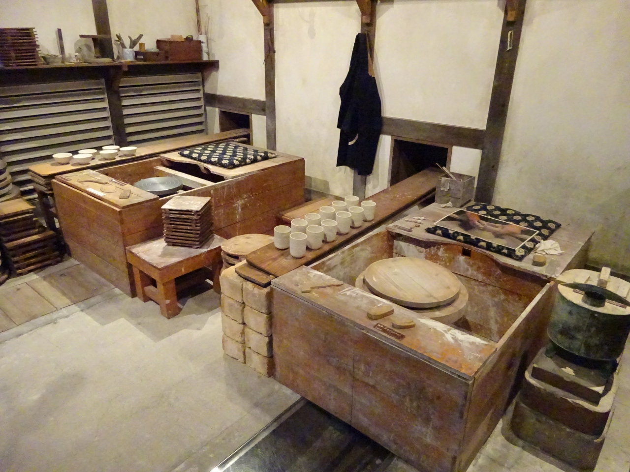 その奥には、昔の焼き物の工房や窯が再現されているのですが、壁の汚れ方ひとつとってもとてもリアル。実際にこんな感じだったんだろうなあと思います。