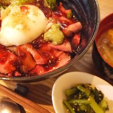 赤味が適度に残ったローストビーフは、口の中でとろける様に柔らかい。たっぷり提供され、ご飯が足りなくなる程。