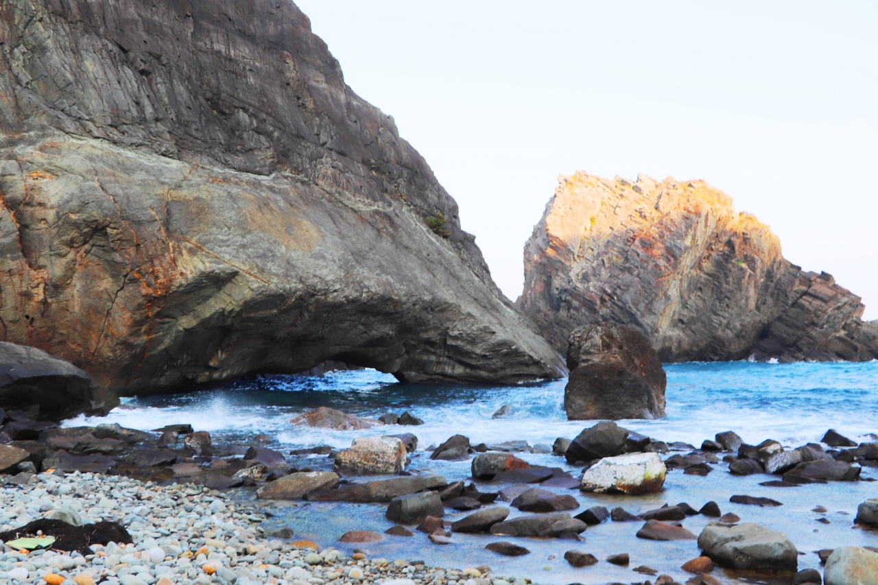 雲見海岸には千貫門と呼ばれる不思議な形の岩があります。
