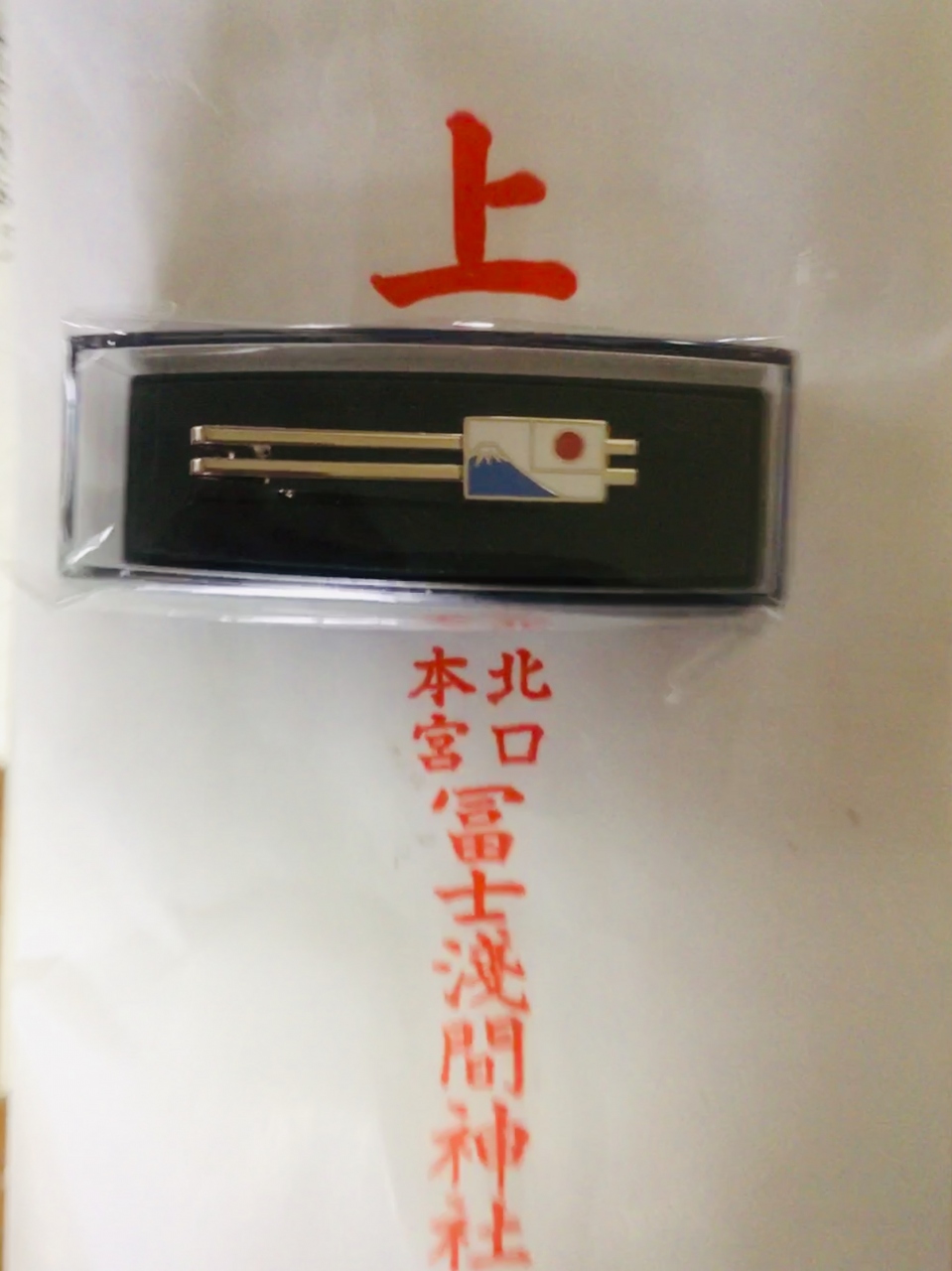 4月の半ばに、下吉田駅最寄の新倉山浅間公園の桜を観に行ったついでに、富士山駅まで足を伸ばして、周辺を廻りました。金の鳥居をくぐって139号線を上り、1kmくらい歩いてから左折し、300mくらい歩くと鳥居がありました。鳥居から本殿までの道の両側は大きな木々に囲まれていて寒いくらいでした。平日のためか人の姿はまばらでした。家族のお土産に富士山のネクタイピンを買ってきました。
