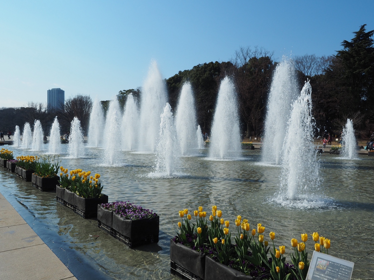 上野恩賜公園の中心にあります。江戸時代には寛永寺の廻廊めぐらされ、根本中堂が建っていた場所に作られました。上がり方も単純ではなく中心の大きなもの、両脇の小さなものが様々に変化し見ていて飽きません。周りでは休憩する方、ランチを食べる方など憩いの場となっている様子。それを見ているだけでも和みます。ただ噴水は常時上がっているわけではないのでご注意を。