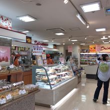 ハワイアンが流れてる中、輸入品中心、ケーキとベーカリー、店内調理の惣菜など