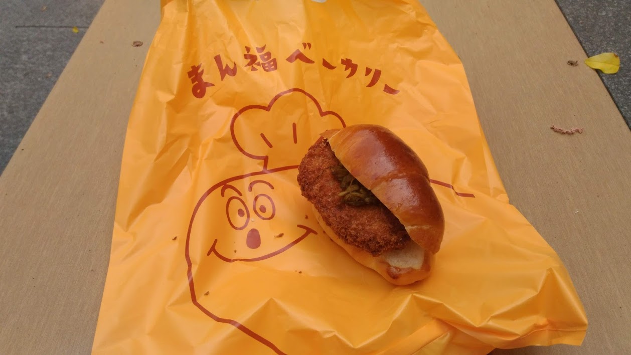 コロッケパン(170円税別)買って近くの公園で食べました。カリカリのコロッケにカレー味が付いておいしかったですよ。