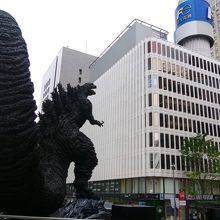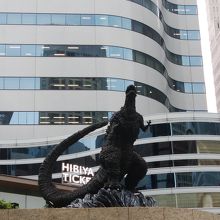 日比谷シャンテの前、地下駐車場入口の上に鎮座しています。