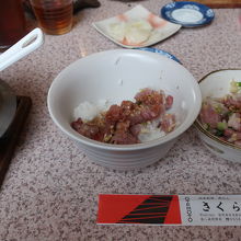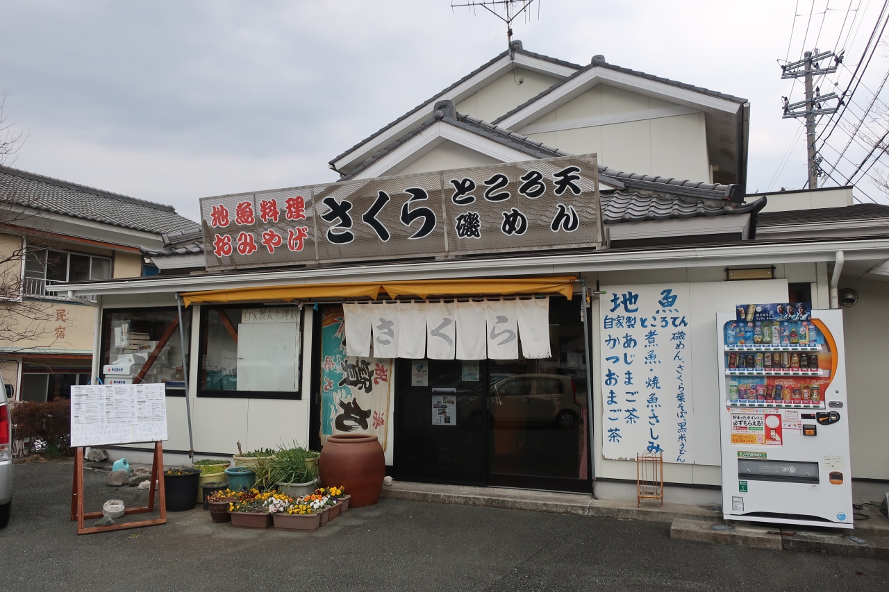 伊豆 松崎町にある伊豆の長八美術館の前の駐車場の脇にある地魚料理のお店です。土曜日の3時位ならば空いているだろうと思っていたのですが、訪れるとほぼ満席。一番奥の席に通され注文したのは鯵まご茶漬け。新鮮な鯵のナメロウがたっぷりで、さらに熱いお茶を掛けて頂くととても美味しく、大満足の味でした。天ぷらや無料のところてんが付くのも嬉しいお店です。