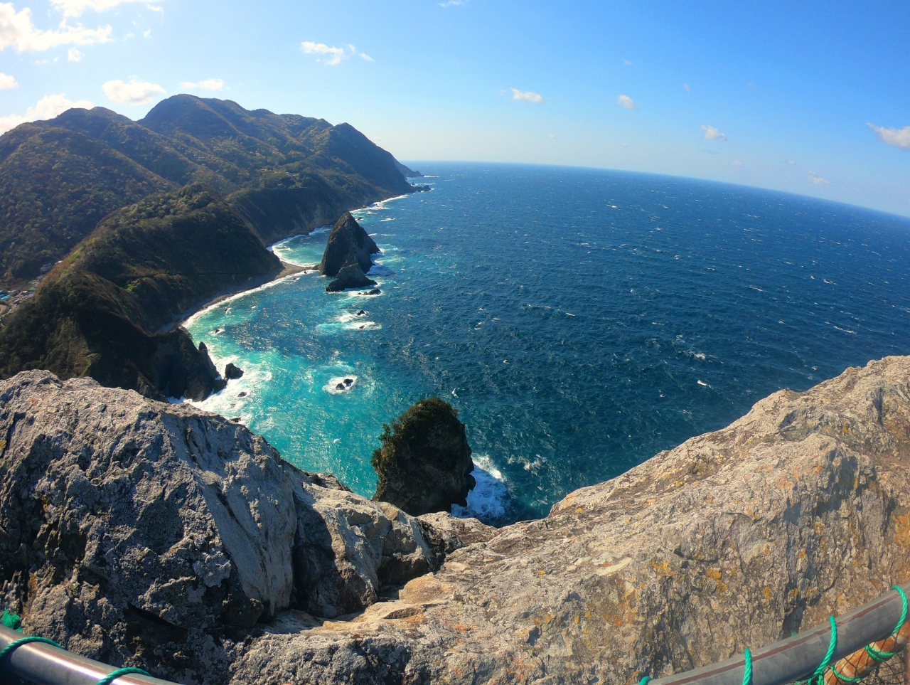 切り立つ山の頂上から見下ろす景色は黒光りする奇岩と青い海が絶妙なコントラストを描き、これぞフォトジェニック!でした。