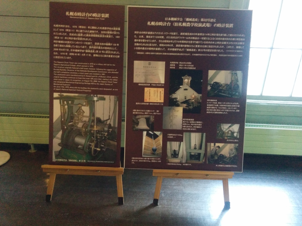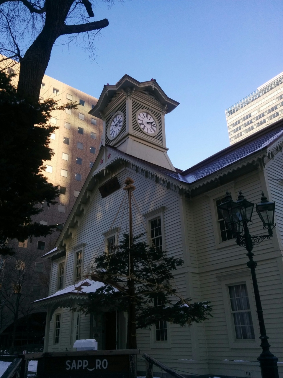 みなさんこんにちは、ふとももぷるぷるです。平成30年12月13日に北海道札幌市にある札幌市時計台に行ってきました。札幌市時計台は、北海道大学の前身である札幌農学校の演武場として、クラーク博士の構想に基づき1878年に建設されました。もともと生徒の兵式訓練や、心身を鍛える体育の授業を行う場所や入学式、卒業式等を行う中央講堂として使われていました。1階展示室では色の移り変わりや大火に遭った際のエピソードなど、時計台にまつわる歴史を展示や2階では再現された演武場の歴史的な雰囲気を体感しながら、実際に時計台で使われているものと同じハワード社の時計機械を見学できます。