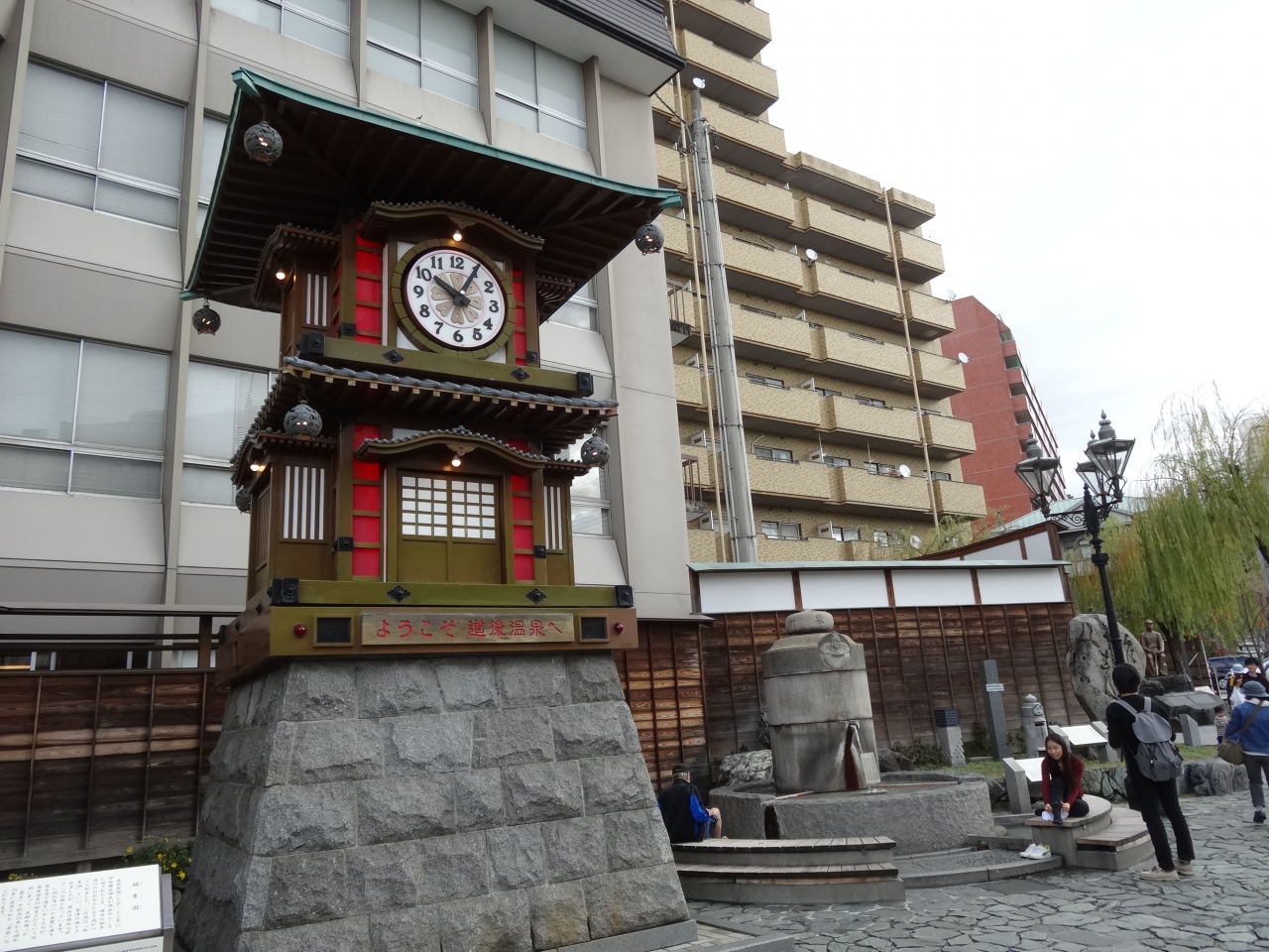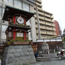 普段は大きなレトロ調の時計ですが、決まった時間になるとサイドの窓が開き、中から人形が出てきて踊りだします。その時にはたくさんの人が集まっていて、写真を撮ったり動画におさめていたりと人気のスポットです。駅前のランドマーク的な場所です。