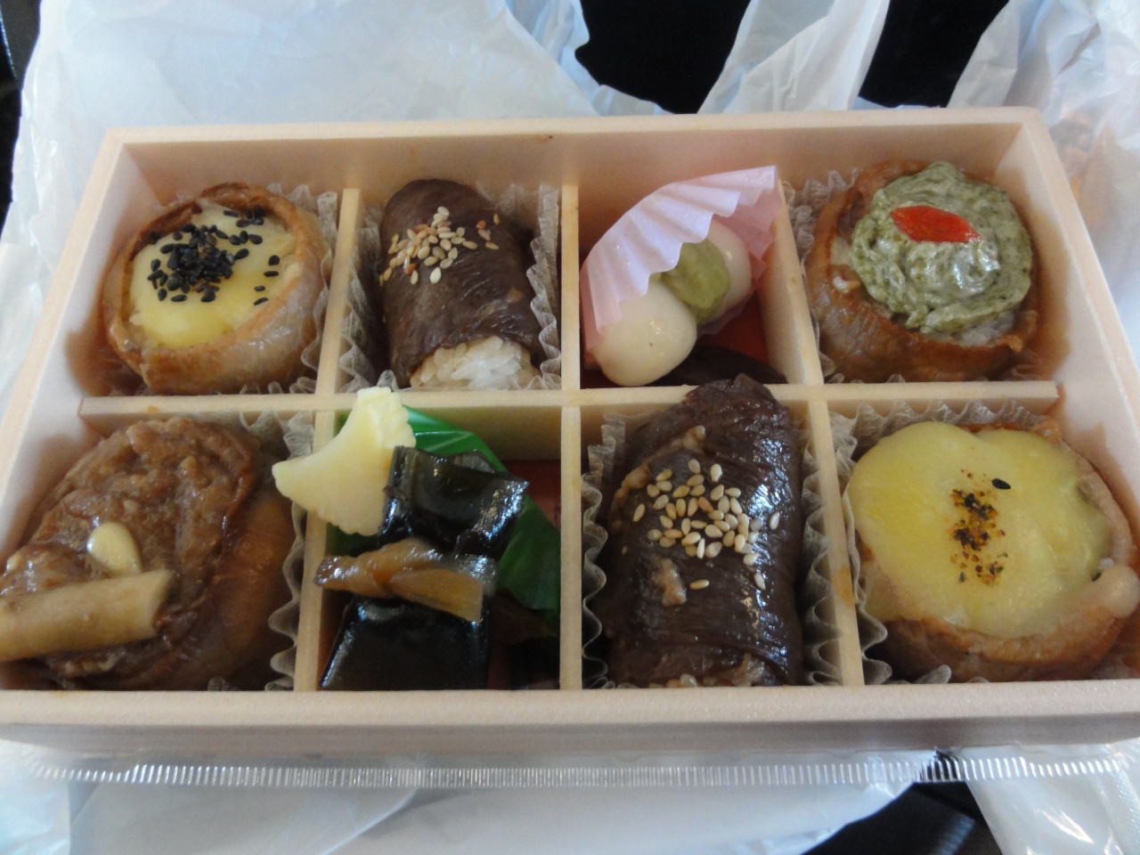 佐藤水産、えびす大黒、寿徳庵、吉兆等のお弁当とおにぎりがあります。コンビニと違い、いかにも駅弁の様相で旅の気分が高まるところです。購入したおにぎりは2時間以内、東京肉むす弁当は17時迄にと手渡される時に時間を言われました。朝食として食べたおにぎりに比べ、昼食に初めて食べた肉むすは、色々なトッピングがあっても飽きる味でした。
