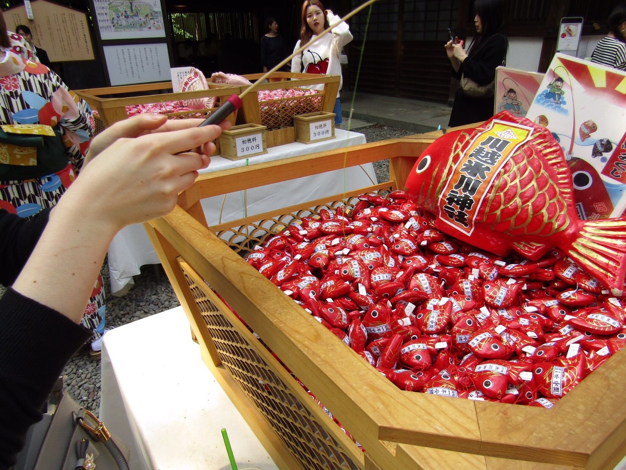 川越駅から、東武バスに乗って行きました。帰りは蔵の街エリアまで歩いて行きました。おみくじの種類が豊富でした。鯛を釣り上げるおみくじが人気のようでした。ピンクの鯛を釣り上げる「あい鯛みくじ」と、赤い鯛を釣り上げる「安鯛みくじ」がありました。どちらも300円です。小銭の用意をしておくと良いです。