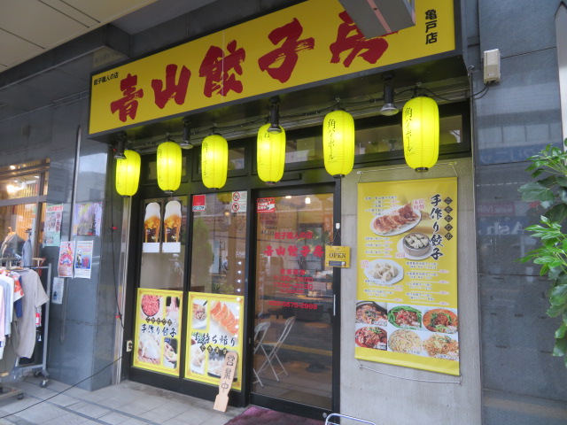 亀戸の明治通り沿い亀戸4丁目交差点近くにある餃子がメインの中華料理店です、店内は狭い方です、餃子と炒飯、麺とセットになった定食メニューがあります、メインの餃子は大きいです、3個から注文できます、今回は餃子と炒飯を食べました、炒飯の量は多いです、ちょっと味が薄かったです、餃子は普通に食べることが出来ました