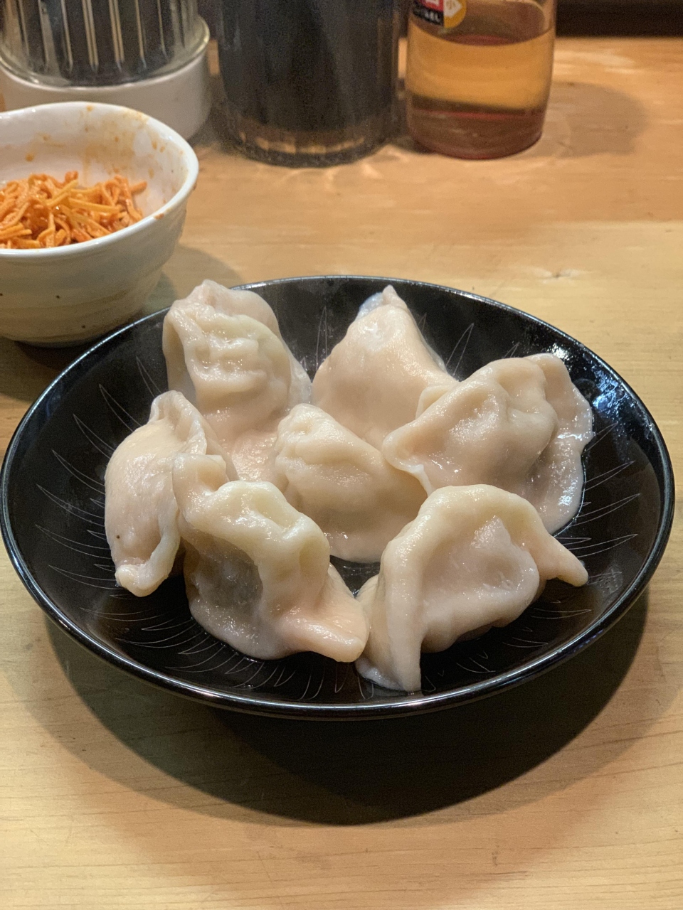 エビ餃子とつまみにピリ辛の干し豆腐和えとビール。餃子はプリプリして具がしっかり詰まっている。干し豆腐は300円とは思えない量とクオリティだった。1人でぶらっと飲むにも良い。訪問時店内は中国人が多かった。