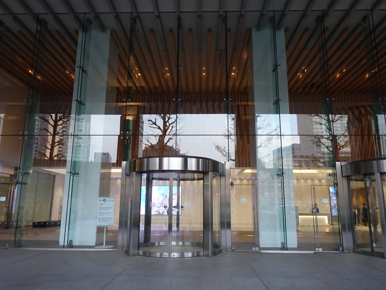 何度も訪れている「丸の内ビルディング」ですが、いつも東京駅から地下街を経由していき、商業施設を利用するので、ビル正面から入るのは今回が初めてでした。エントランス部分は大きな吹き抜けになっており、改めてこのビルの素晴らしさを感じました。