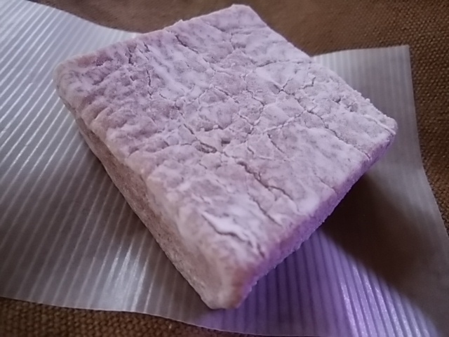 ニッキ餅目当てです。昔ながらの和菓子やさんのショーケースに、残り少なくなった和菓子たちの中に、見つけました、ニッキ餅。