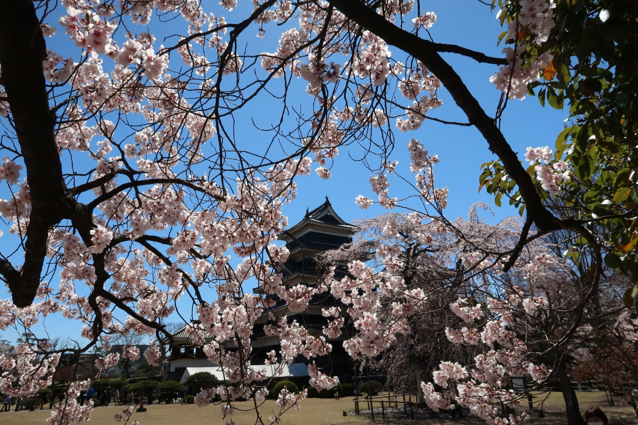 桜と天守閣を望み、素晴らしい競演に大満足な