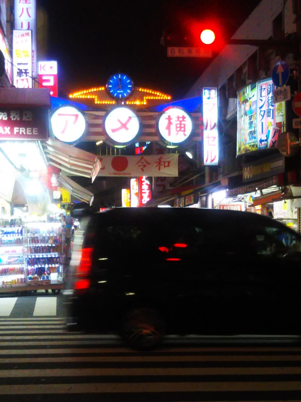 上野駅から御徒町駅までの商店街がアメ横です。魚介や生鮮野菜、くだものや、乾きもの、お茶、のりなどの専門店が軒をならべ活気があります。夜は飲屋街として盛り上がっていました。スポーツ用品店は市場価格よりかなり安かったです