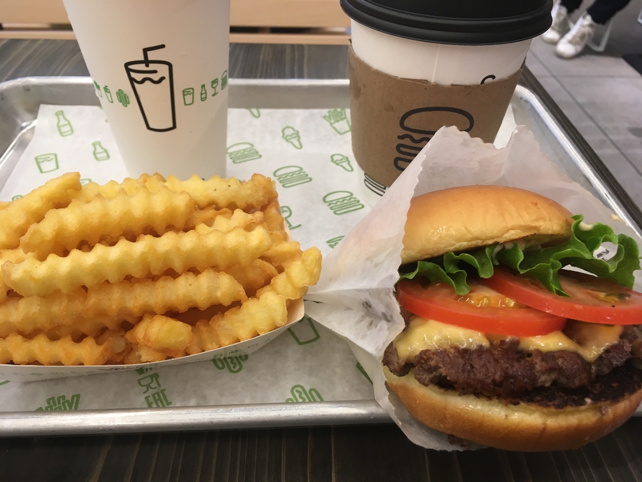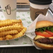 広く明るい店内はまるでニューヨークにいるかのようでちょっとドキドキ。バーガーとポテト、コーヒーとシェイクを注文。2000円と高いけど、量も多めだし、とーっても美味しかったので満足。これだけのために来ても良いと思う!