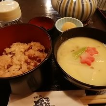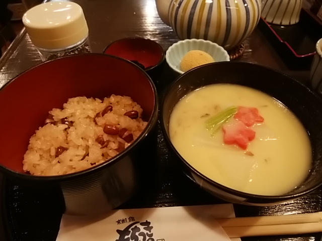 今回はゴー。「白味噌雑煮とお赤飯のセット」950円(税込)です。餅は餅屋。白味噌雑煮も美味しいけれど、お赤飯も美味しい!