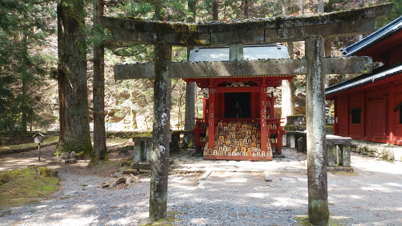 輪王寺開山堂として日光市山内の住所になっていますが、実質は日光東照宮の社務所から美術館方向に歩いた(登った)先にあり少し遠いです。勝道上人が弘仁8(817)年3月1日に遷化(死去)した時に火葬したのが現在の仏岩谷だそうです。その後に霊を祀るために朱塗りで重曹宝形造りという建築方法でお堂を建立しています。勝道上人と弟子10人の木像も本尊の左右に収められていて、お堂近くにも見るものが少しあり、山の上の平地のポツンと建っていて不思議な空間でした。