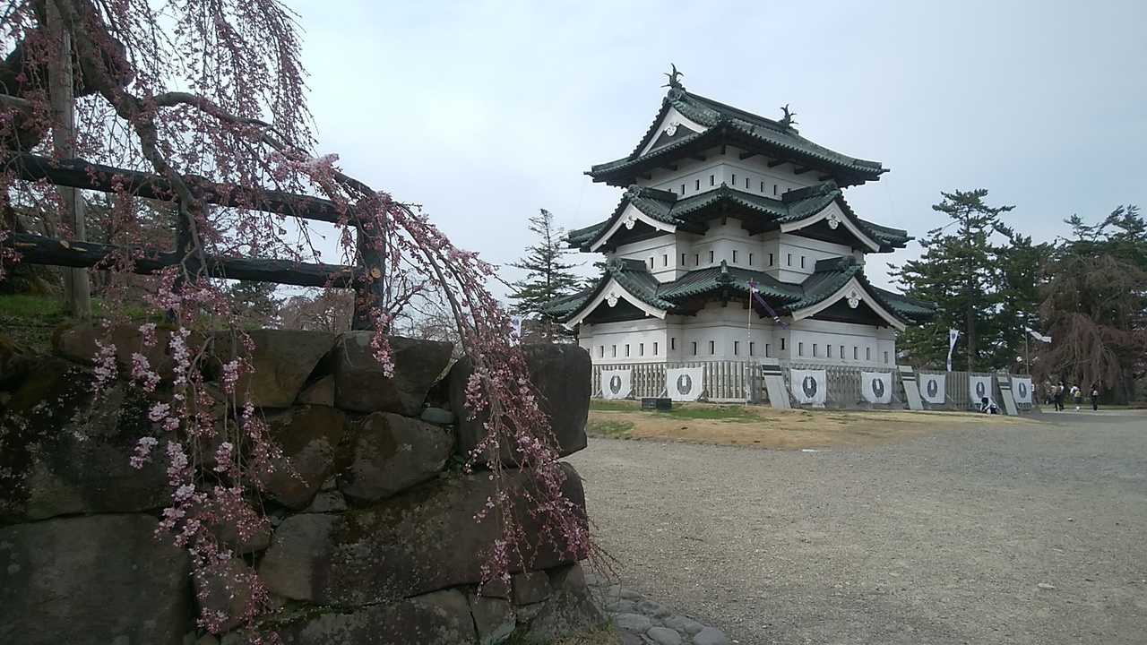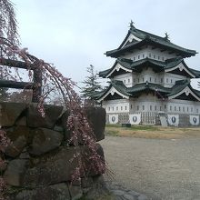 石垣が補修工事のため、本丸は移動して本来の場所と違ってましたが、背景に岩木山が美しく見られて逆に良かったです。入場券を買って天守の中も見学しましたが、急階段にびっくりです。青空の下、天守と岩木山のツーショットの写真がとれて良かったわ!