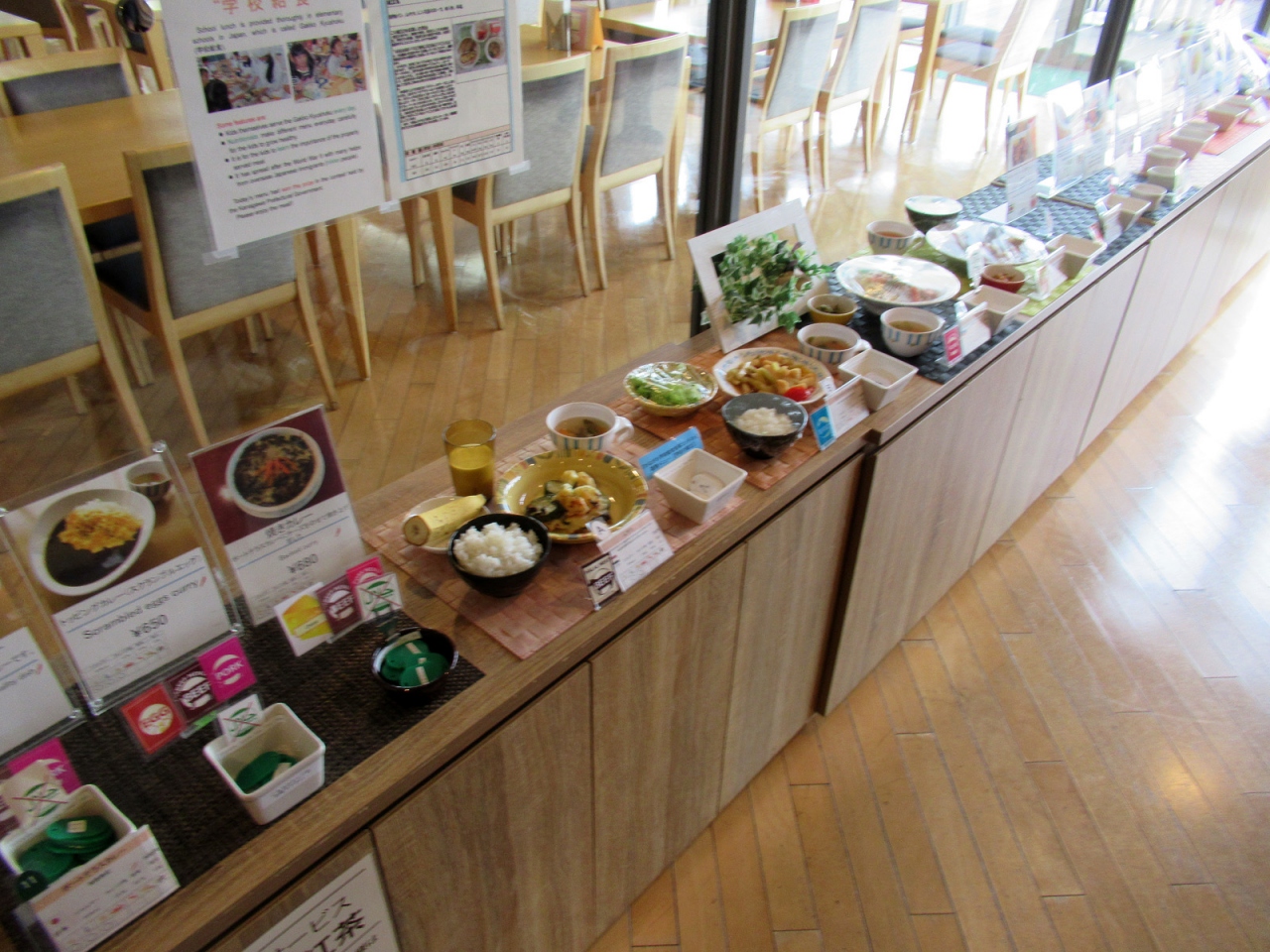 「JICA横浜」の建物に2階から入ると、まずはJICAによる国際協力・災害救助活動の展示、その奥には「国際移住資料館」と「図書資料室」、そして3階にある海の見える「ポートテラスカフェ」では世界各国の料理のメニューがありました。私は食事をしてから訪れたので食べなかったのですが、それらの値段はなかなか安いと思いました。