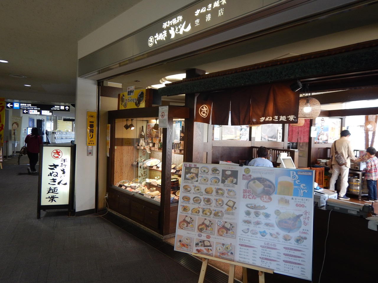 高松市内6店舗、県外3店舗を展開する「さぬき麺業」の空港店です。場所は2F出発ロビー(保安検査を受ける手前)にあります。味は市内店と同じ品質で、喉越しの良い麺が特徴ですが、値段は市内店より少し高くなっています。お腹がいっぱいだったり、時間が無い時には、2階のファミマ横にさぬき麺業が提供している「空港だし」(うどんスープ)が無料で楽しめます。