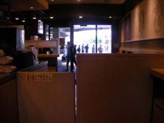 府中本町駅のコンコースにあった小竹林がいろり庵きらくに変わり、店頭の券売機で食券を買う方式で、店内に入ると反対側の改札の外にも店舗があり通り抜けが出来ないようになっていて、立ち喰いのカウンターと席がある場所があります。店の前には「富士山の見える窓」があり、天気の良い日は富士山が見えます。