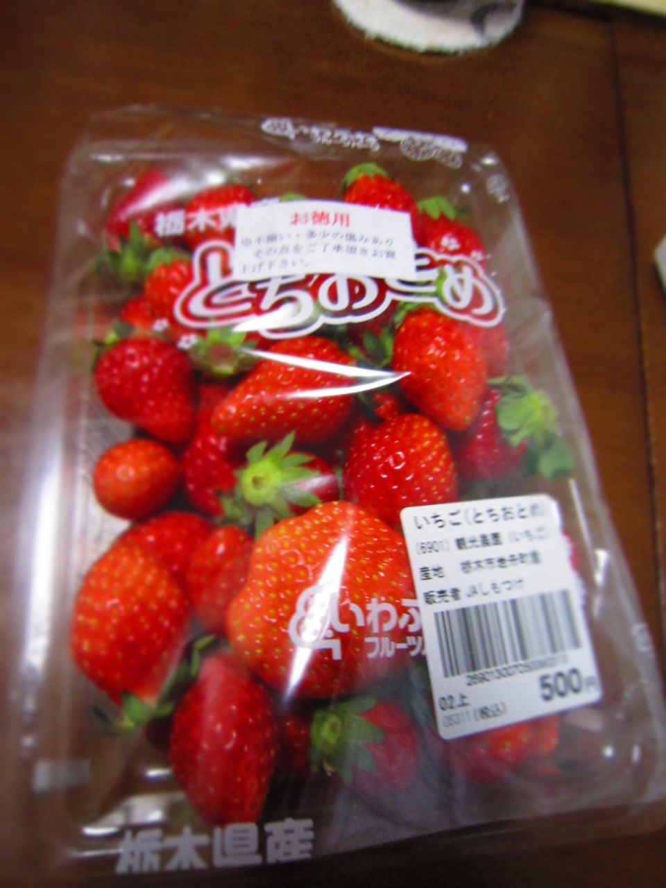 イチゴも不揃いですが、大きなパックに500円とお買い得でした。