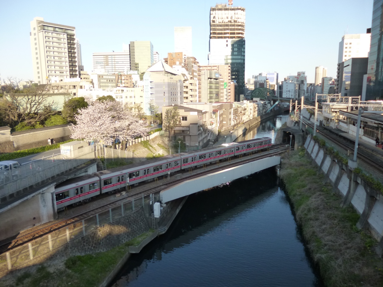聖橋を渡っていたところ、神田川のほとりに桜の花が咲くのが見え、また丸ノ内線の車両が走り去るのが見えました。更には中央線の線路もあり、都内でも魅力的な撮影スポットだと思います。それゆえか、ビジネスマンも含め、いつも人が多い場所でもあります。