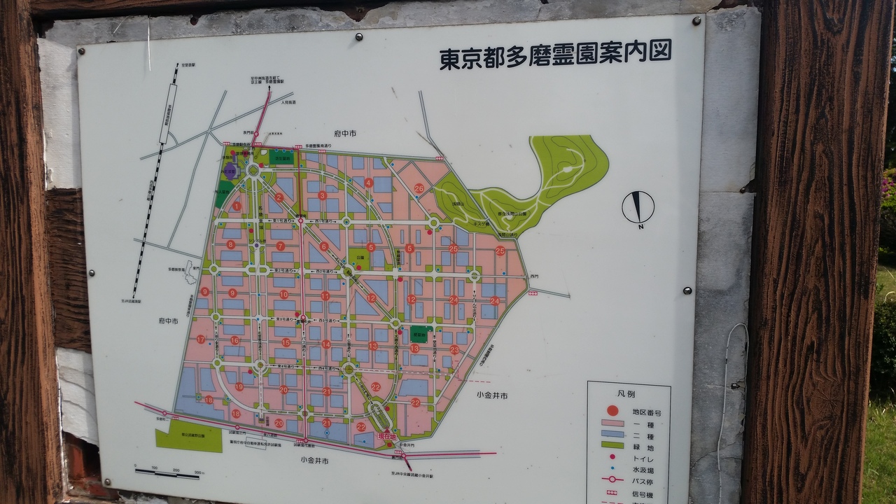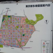 東京都西部の府中市、小金井市、調布市に囲まれるようなかたちで、とても広い霊園になっています。