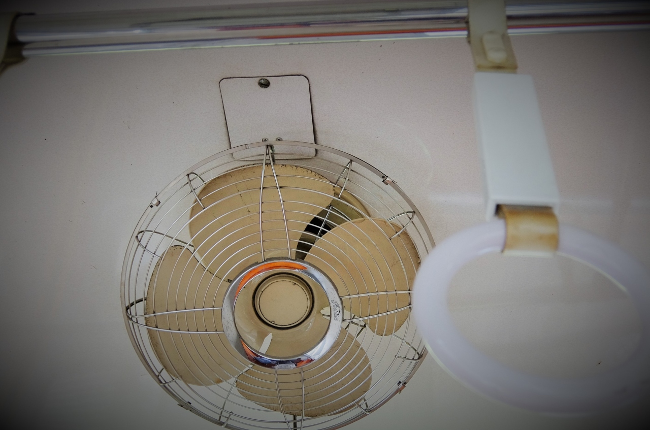 エアコンは完備ですが、夏には天井の扇風機が回っていたりします。