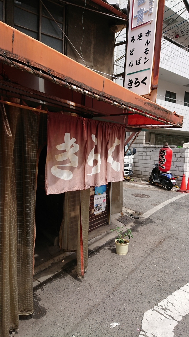 西成の中でもディープなエリアにお店はあります。店のたたずまいがレトロなので調べていかないとなかなか入りづらいお店ですが、1皿140円でいただけるホルモンは個性的な肉質でおいしいです。うどんや中華そばにホルモンを乗せたメニューもありこちらも格安でいただけます。