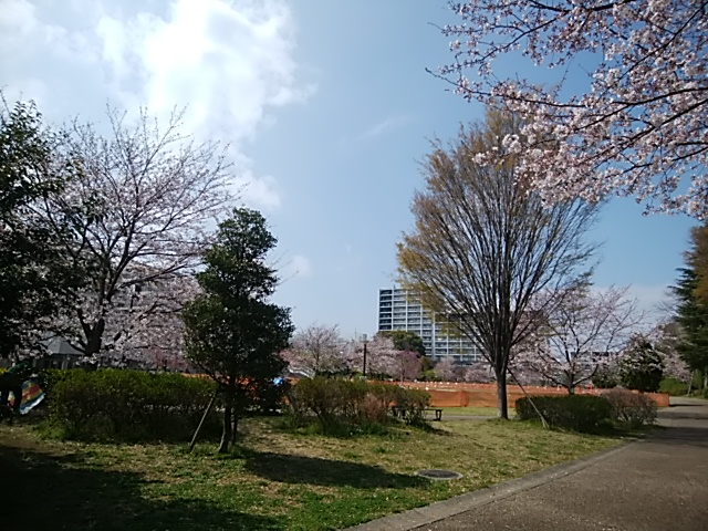 住宅地の真ん中にある広めの公園です。小さな子供連れの家族が多い印象。桜の木があることから、お花見を楽しむ人たちがいっぱいいました!