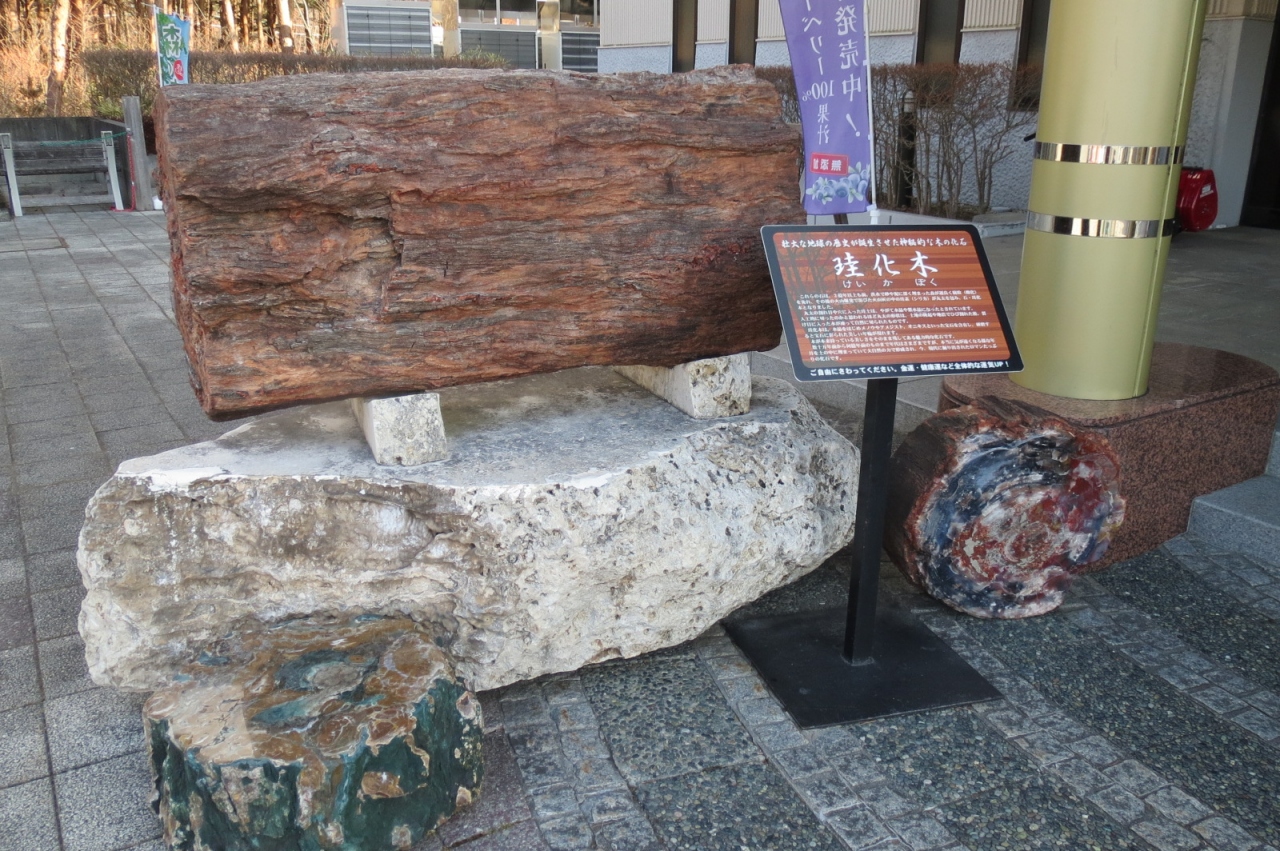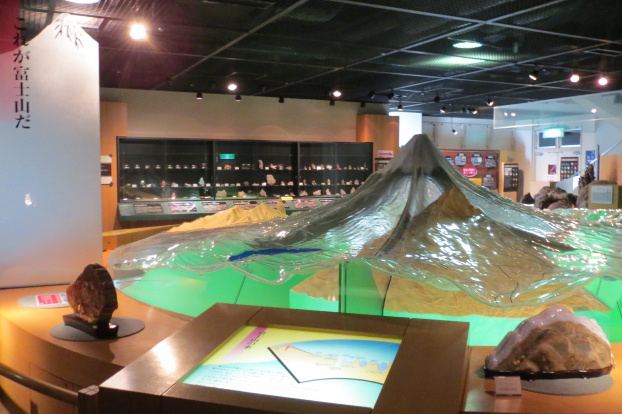 道の駅にある、無料の博物館です。以前、ここにある道は車で2回ほど通過したのに、全く気が付かなかったのが不思議です。博物館の前には富士山から出土した佳花木を展示。館内の展示が期待できそう。富士山の地質・構造がパノラマ風に再現されていたり、肉食恐竜が出迎えたりしてくれます。水晶の展示も多く、水晶の秘められたパワーを実際に感じさせる展示もあります。地下一階から出入口の地上一階へと出るのですが、出入口に繋がらない二階に出るような錯覚をします。面白い構造になっています。