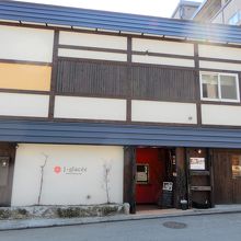 月見橋を渡ってぬくもりの宿ふるかわの隣のおしゃれな外観のお店です。
