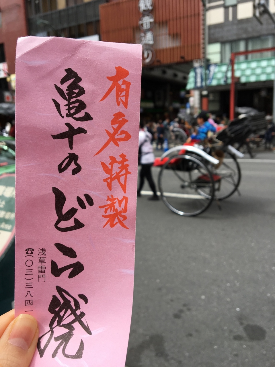 ゴールデンウィークの中日。午後に到着したら、銀座線の出口くらいから並んでいました。30分くらい並んで店内へ。お店の中でも並んでいます。有名などら焼きを白あんと黒あん両方購入しました。どら焼きの他にも、柏餅やお煎餅なども売っています。最中も餡子に高さがあって気になる!