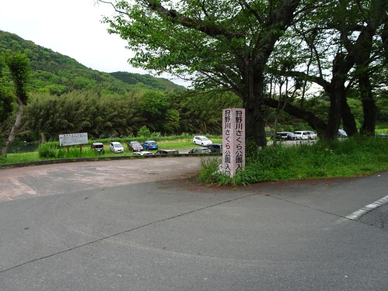 さくらの季節も終わった曇り空の日に訪問。狩野川の河川敷に桜の木がずっと並んでいるのが分かります。さくらの木がある広場という感じです。