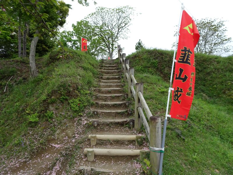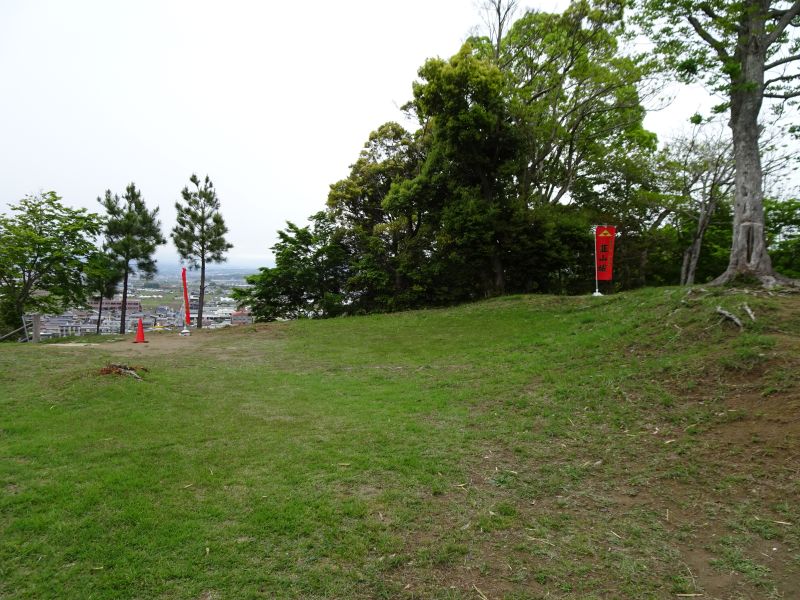 城池親水公園の遊歩道から登っていきました。案内板も無かったので、どこから登るのか分からなかったです。韮山城跡近くであろうところに登り口あったのでそこから登ること15分、高台に出ました。韮山城と書かれた赤い旗があるだけで、単なる高台の空き地でした。
