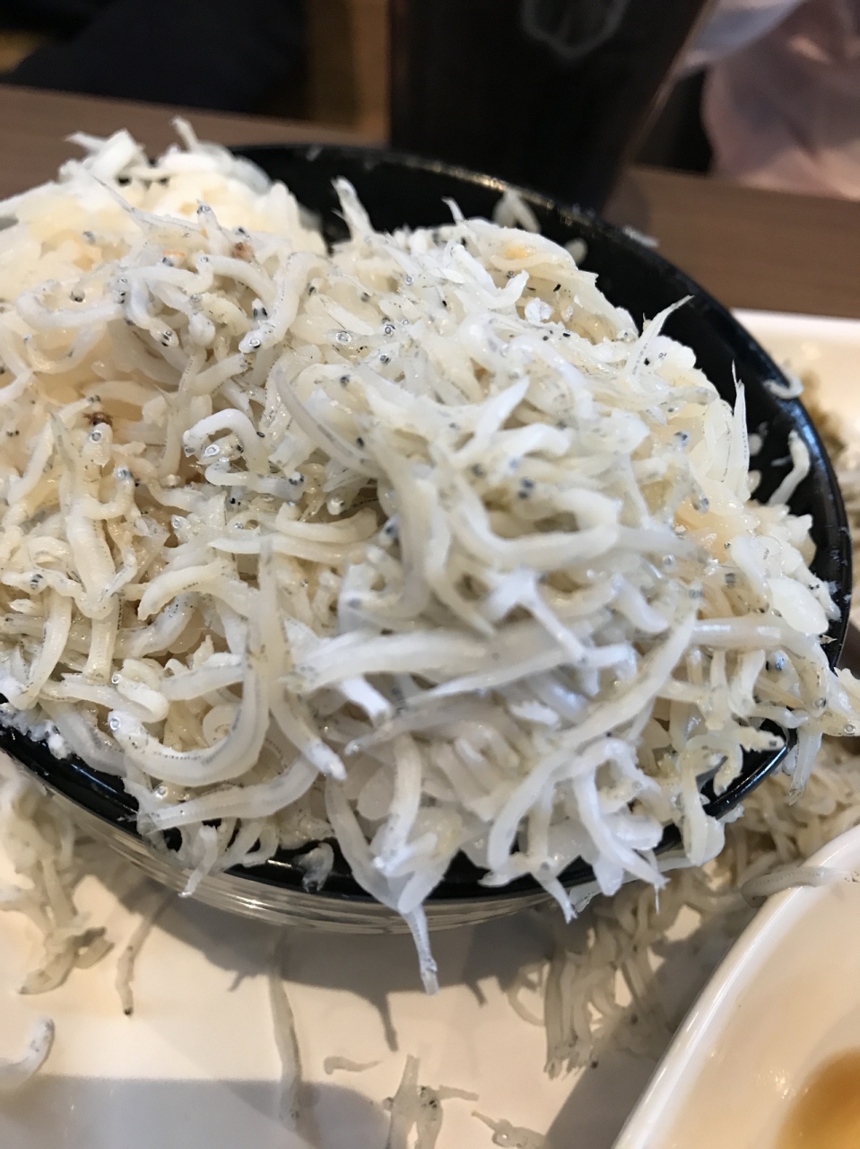 人気メニューのわさびスープ、しらす丼、鯛刺身3皿、サラダなどオーダー。