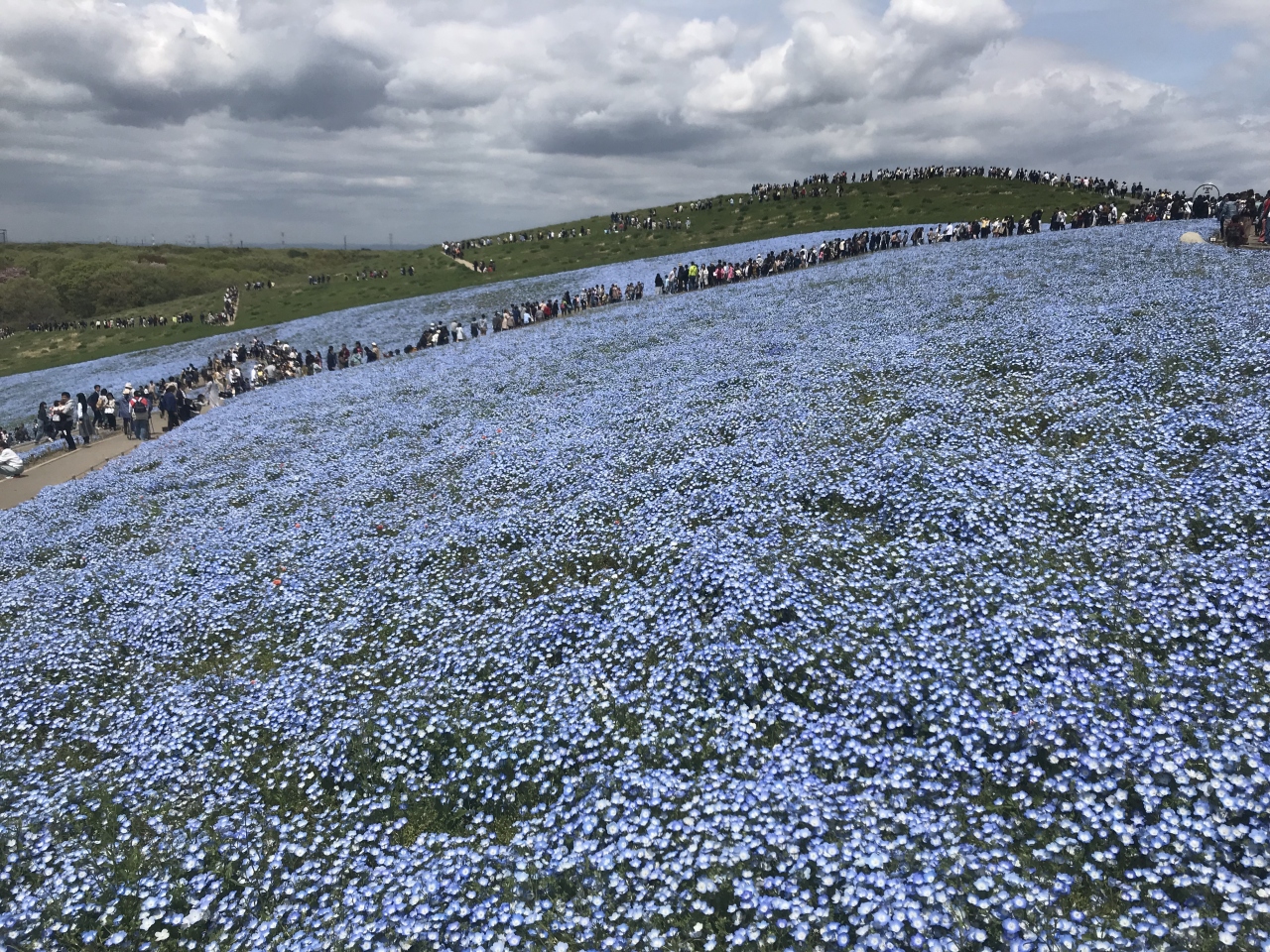 数年ぶりに行きましたが、やはりネモフィラは奇麗でした。ただ、GW中は予想通り人が多く、駐車場待ちで1時間かかりました。中は、お店もトイレも激混みでした。シートを持参し、並んで買ったものをゆっくり食べ、癒されました。人が多かった以外は良かったです。