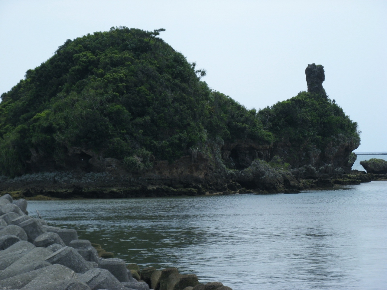 兼城港フェリーターミナルの傍にある小さな島に立つ灯台のような高い岩です。“ガラサー”はカラスのことで、カラスが群がる山からこの名がついたとか。